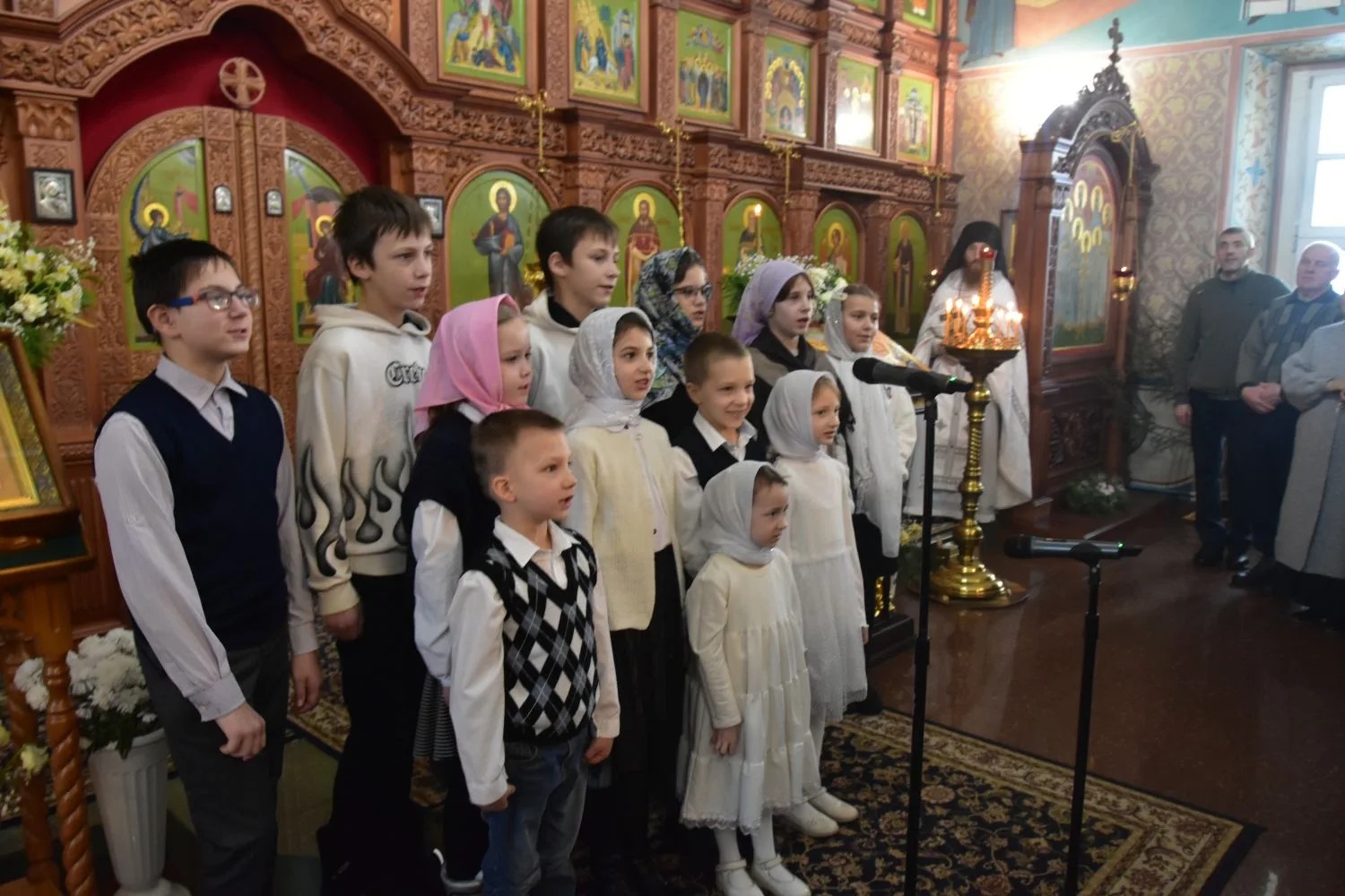 По окончании службы ученики воскресной детской школы выразили свое отношение к празднику в честь Рождества Христова самыми возвышенными словами-словами церковного песнопения.Дети исполнили: тропарь рождества Христова,песню»На пороге Рождества» и прочитали стихи.В честь праздника Рождества Христова ребятам вручены сладкие подарки.