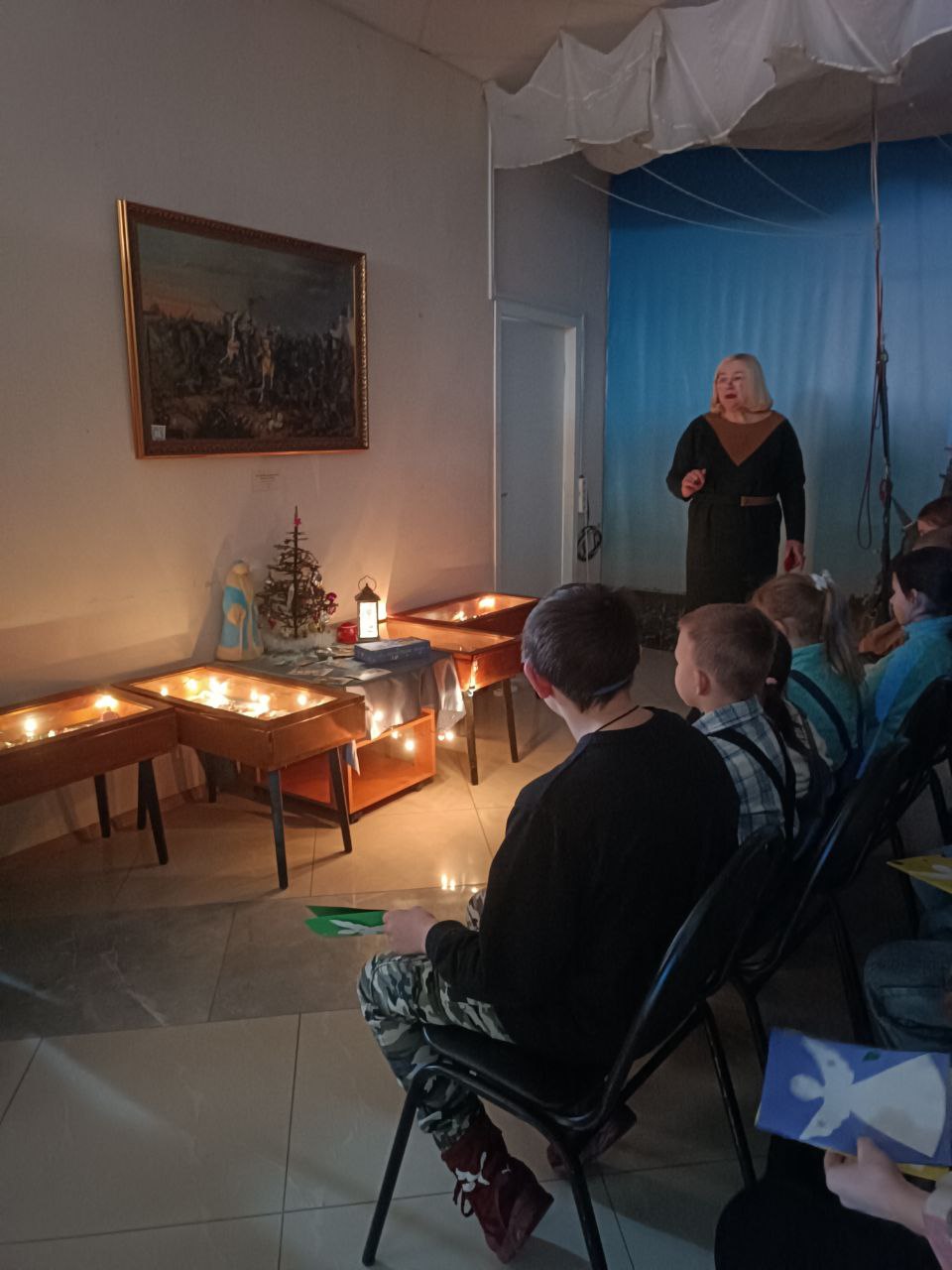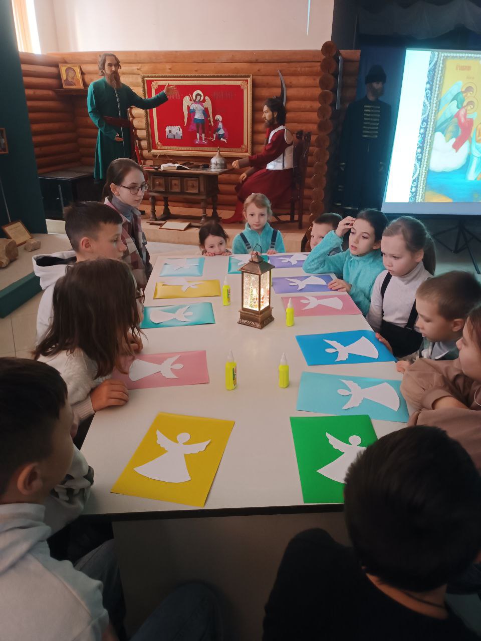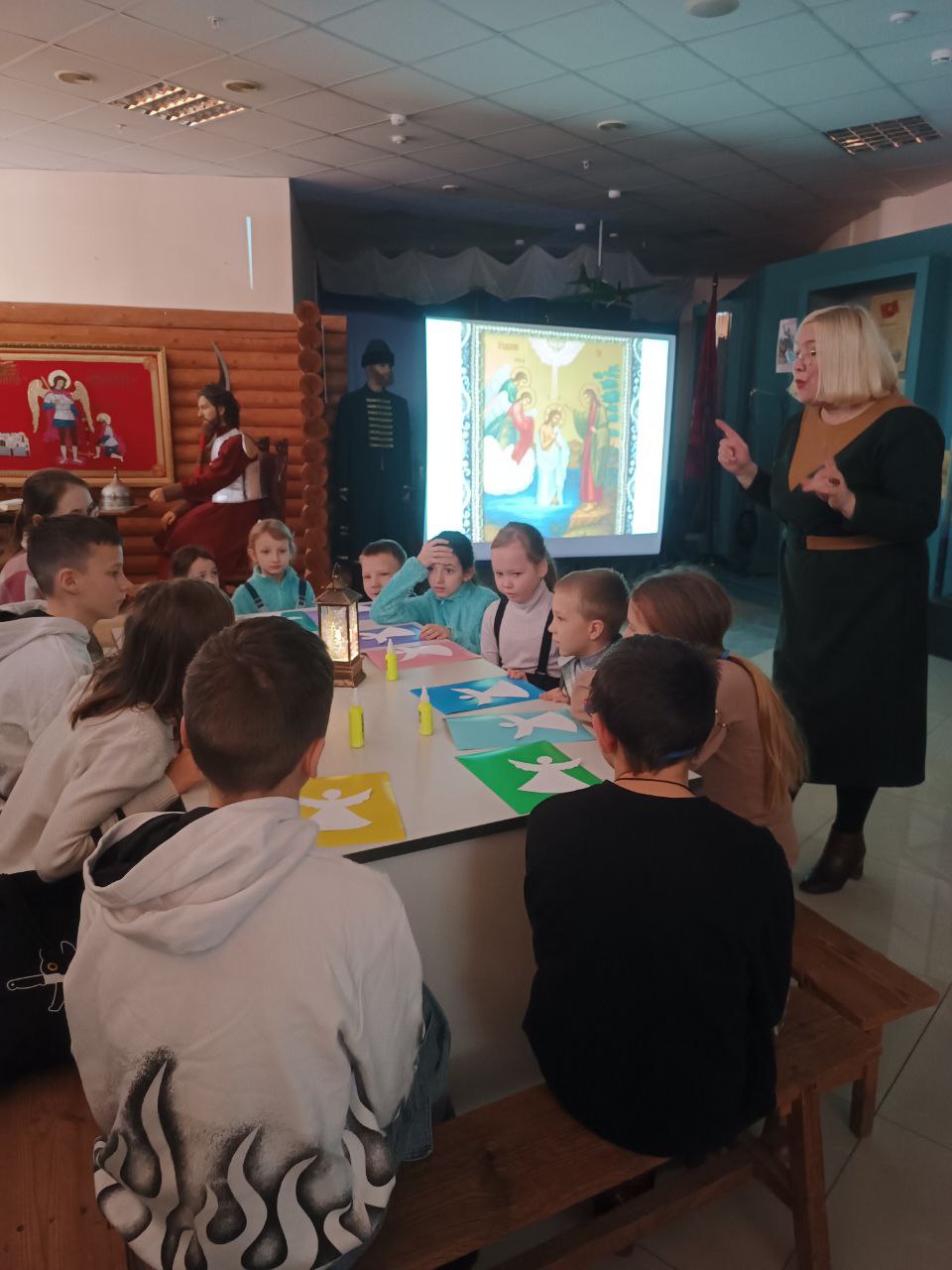 Ольга Александровна познакомила их с иконографией иконы » Крещение Господне», рассказала о выставке старинных новогодних игрушек.