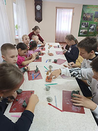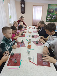 Ребята участвовали в мастер классе по лепке игрушки. Мастер класс проводил один из сотрудников Музея глины. Ребятам были предложены варианты изготовления различных игрушек. Каждому ученику с душевным вниманием давались наставления в лепке элементов выбранной игрушки.